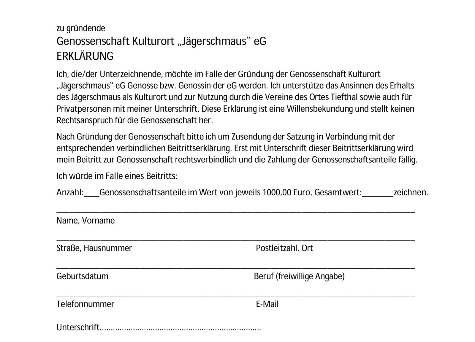 Formular zur Interessenbekundung, um Mitglied der Genossenschaft zu werden