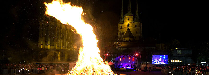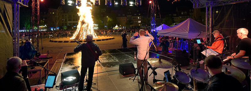 Zwischen und nach dem Hexenspektakel auf dem Domplatz am 30.04.2022 spielt die Band. Das Konzert endete erst im Mai – also nach Mitternacht.